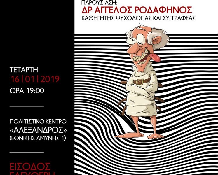 Ομιλητής ο Δρ Άγγελος Ροδαφηνός. Καθηγητής Ψυχολογίας, συγγραφέας «Από Πρίγκιπας Βάτραχος και Τούμπαλιν» και «Οι Ηλίθιοι είναι Ανίκητοι» www.rodafinos.weebly.com