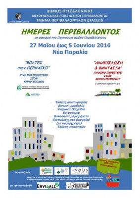 Με αφορμή τον εορτασμό της Παγκόσμιας Ημέρας Περιβάλλοντος στις 5 Ιουνίου, το Ελληνικό Κέντρο Βιοτόπων – Υγροτόπων, σε συνεργασία με τον Δήμο Θεσσαλονίκης και τον Φορέα Διαχείρισης Δέλτα Αξιού – Λουδία – Αλιάκμονα διοργανώνουν τη δράση «Βόλτες στον Θερμαϊκό», που θα φιλοξενηθεί στη Νέα Παραλία Θεσσαλονίκης (Κήπος των Εποχών, Γυάλινο Περίπτερο) από τις 28 Μαΐου έως και τις 5 Ιουνίου 2016.