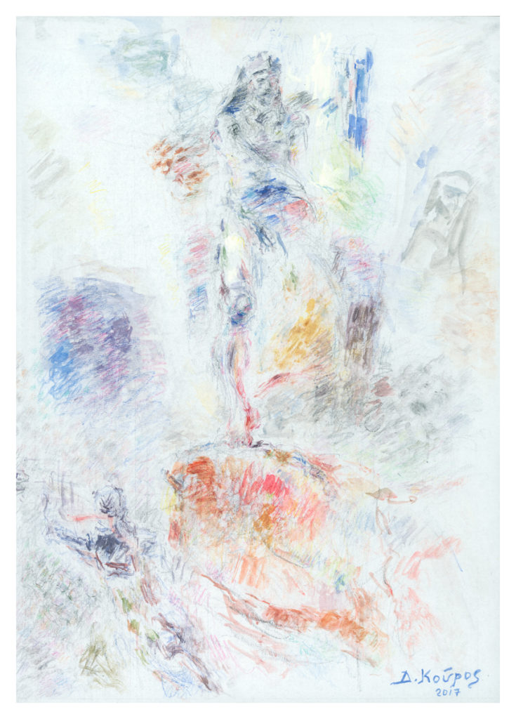 Είκοσι τέσσερα έργα πλασμένα με τα πιο απλά εκφραστικά μέσα, μολύβι, κάρβουνο, παστέλ, αποτυπώνουν την προσπάθεια του καλλιτέχνη να συλλάβει τη μορφή και να την αποτυπώσει, καθώς γεννιέται. Πρόκειται για μια βαθύτερη πνευματική ανάγκη να καταγραφούν κυρίως οι απρόβλεπτες, «εξ αίφνης» συλλήψεις που γεννιούνται με ερέθισμα τα ορατά στοιχεία του κόσμου και πρωταγωνιστή τον άνθρωπο.
