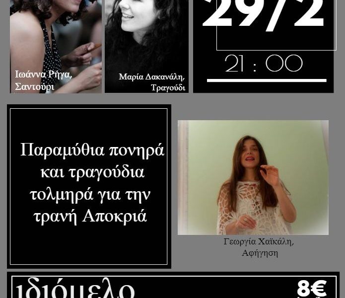 Με τη Γεωργία Χαϊκάλη στην αφήγηση, την Ιωάννα Ρήγα στο σαντούρι και την Μαρίνα Δακανάλη στο τραγούδι.