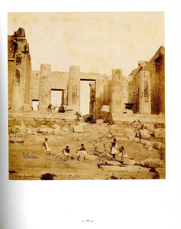 Με τον ορισμό της Αθήνας ως πρωτεύουσας του νεοσύστατου Ελληνικού κράτους, μια από τις προτεραιότητες ήταν η αποκατάσταση της Ακροπόλεως ως έξοχου αρχαιολογικού χώρου, βάσει ενός ολοκληρωμένου προγράμματος ενεργειών και εργασιών που προέβλεπε μεταξύ άλλων ελευθέρωση των μνημείων και των προσπελάσεων από επικτίσματα και προσκτίσματα διαφόρων εποχών καθώς και αναστηλωτικές εργασίες στα μνημεία. Στο πλαίσιο αυτό το 1850 υπό τον αρχαιολόγο Κ. Πιττάκη αναστηλώθηκε τμήμα της μαρμάρινης κλίμακας των ρωμαϊκών χρόνων, πλάτους τριών σχεδόν μέτρων (ένα έβδομο του πλήρους πλάτους) και μήκους 19μ, που εκτεινόταν από την ΒΔ γωνία του πύργου της Αθηνάς Νίκης έως τα Προπύλαια και περιλάμβανε 38 βαθμίδες. Χρησιμοποιήθηκαν σωζόμενοι λίθοι που βρίσκονταν σε επαφή με τον Πύργο της Αθηνάς Νίκης και το βάθρο της νότιας δυτικής πτέρυγας των Προπυλαίων. Αμέσως μετά οι ανασκαφές προχώρησαν δυτικότερα. Τότε ήρθαν στο φως η δυτική πύλη με τους εκατέρωθεν πύργους και στο εσωτερικό της βαθμίδες της κλίμακας, τρεις κατώτερες διατηρούμενες σε όλο το πλάτος του χώρου, το οποίο σε αυτή τη θέση ήταν τουλάχιστον 22,7μ. και άλλες 13 σωζόμενες τμηματικά. Η θέση και η κλίση αυτών βεβαίωνε την ύπαρξη άλλων δέκα μη σωζόμενων βαθμίδων και ενός ευρύτατου πλατύσκαλου, του οποίου το ανατολικό όριο συνέπιπτε με την ΒΔ γωνία του πύργου της Αθηνάς Νίκης. Το πλατύσκαλο, μεγάλο μέρος του οποίου διατηρείται ακόμη, είχε μήκος όσο το πλάτος της κλίμακας και πλάτος περίπου 4μ. Το 1880 ο R. Bohn, προβαίνοντας και σε μικρές ανασκαφικές τομές, διαπίστωσε ότι εσωτερικά της δυτικής πύλης η μεγάλη κλίμακα σχημάτιζε ένα ακόμη πλατύσκαλο. Εκτός αυτού τεκμηρίωσε έναν ισχυρότατο αναλημματικό τοίχο κατά μήκος της βόρειας πλευράς της ανόδου, αποτελούμενο από κεκλιμένες στρώσεις μεγάλων ορθογώνιων λίθων και μία ομοίως κεκλιμένη επίπεδη λάξευση του βράχου κατά μήκος της νότιας πλευράς της ανόδου.