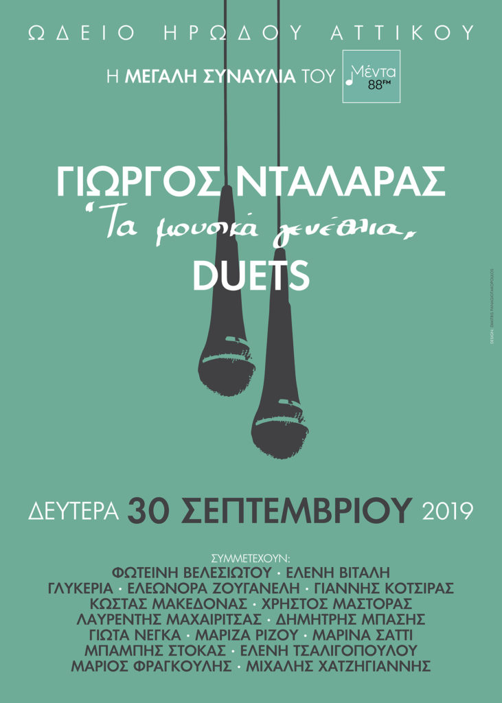Φωτεινή Βελεσιώτου, Ελένη Βιτάλη, Γλυκερία, Ελεωνόρα Ζουγανέλη, Γιάννης Κότσιρας, Κώστας Μακεδόνας, Χρήστος Μάστορας, Λαυρέντης Μαχαιρίτσας, Δημήτρης Μπάσης, Γιώτα Νέγκα, Μαρίζα Ρίζου, Μαρίνα Σάττι, Μπάμπης Στόκας, Ελένη Τσαλιγοπούλου, Μάριος Φραγκούλης, Μιχάλης Χατζηγιάννης σε δυνατά DUETS με τον Γιώργο Νταλάρα, σε μία συναυλία που συνδιοργανώνουν ο Μέντα 88 και η ΜINOS–EMI/UNIVERSAL. Και ο κατάλογος μεγαλώνει…