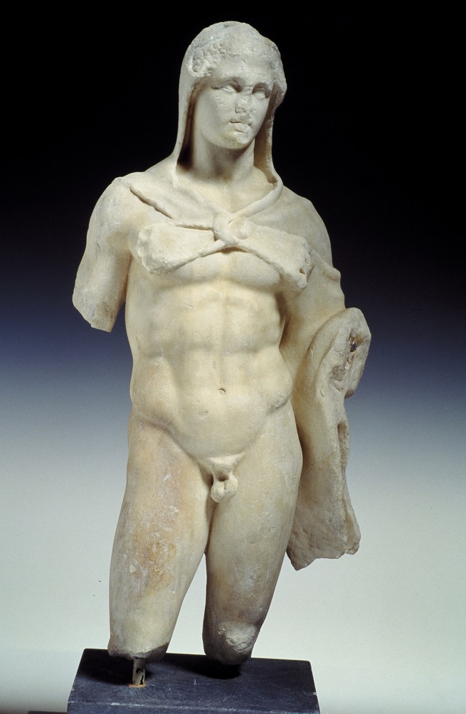 Απέναντι από το σημείο που βρέθηκε η κεφαλή του Ερμή, κοντά στον Ι. Ν. της Αγίας Ειρήνης, ανεσύρθη το 1885, από τα χώματα ένα μοναδικό εύρημα, εκπληκτικής τέχνης και ομορφιάς: Το άγαλμα γυμνού νεαρού Ηρακλή (εικ. 1), με την λεοντή να πέφτει από το κεφάλι καλύπτοντας μόνο τον αριστερό ώμο και με τα πόδια της δοράς του ζώου να διασταυρώνονται στο ρωμαλέο στήθος του ημίθεου.