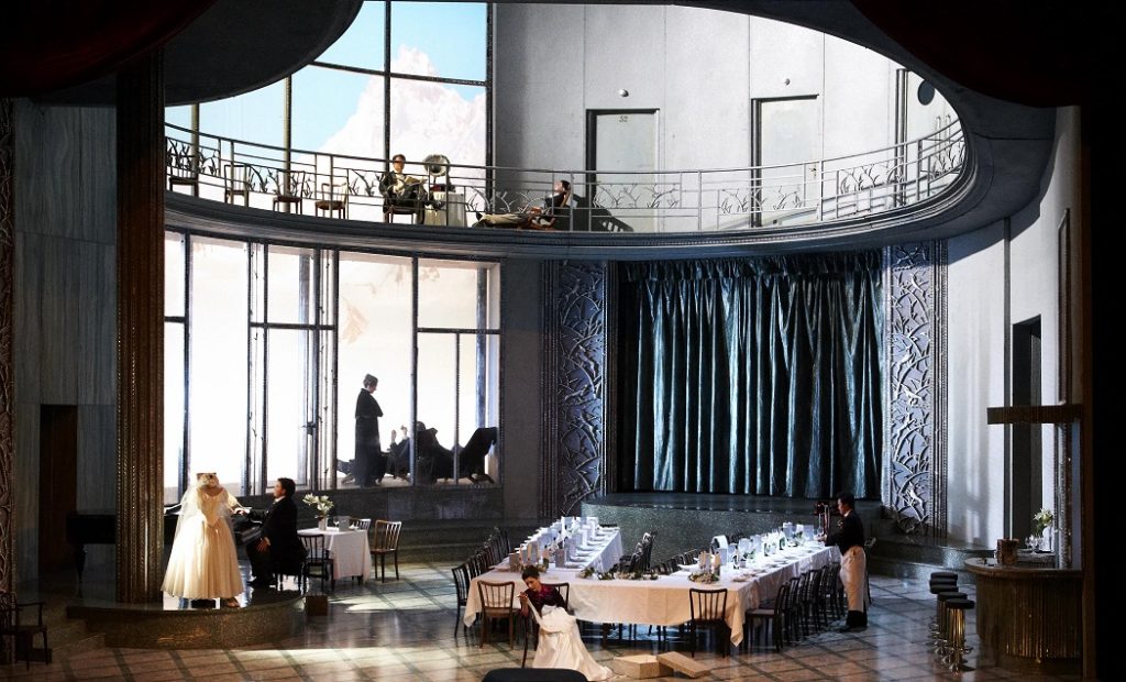 Ο διακεκριμένος σκηνοθέτης της όπερας Μάρκο Αρτούρο Μαρέλλι εμπνεύστηκε για τη σκηνοθεσία της Υπνοβάτιδος από το μνημειώδες αριστούργημα του Τόμας Μαν Το μαγικό βουνό, στο οποίο περιγράφεται ένας κόσμος όπου ο χρόνος μοιάζει να έχει παγώσει. Έτσι επιλέγει να μεταφέρει τη δράση του έργου σε ένα πανδοχείο ή σανατόριο στις ελβετικές Άλπεις, θεωρώντας ότι ανταποκρίνεται απολύτως στη μουσική του Μπελλίνι, με τις μαλακές του μελωδίες, στις οποίες συναντώνται το όνειρο με την πραγματικότητα.