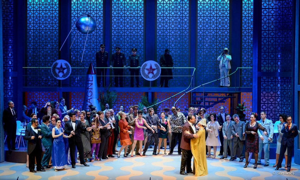 Η ιδέα για την παράσταση αυτή της Νυχτερίδας διαμορφώθηκε μέσα από κάποιους αυθαίρετους συνειρμούς: τη συγγένεια των λέξεων «πραξικόπημα» και «οπερέτα», την ιδιομορφία του έργου, το οποίο περιγράφει μια ιστορία που ξεκινάει το απόγευμα σε ένα αστικό σαλόνι και καταλήγει το ξημέρωμα σε μια φυλακή, το μυστηριώδες πρόσωπο του Ορλόφσκι, το οποίο με δελέασε να προβάλω πάνω του το σοβιετικό φαντασιακό και, κυρίως, από την προσωπική μου εμμονή για εκδοχές έργων του μουσικού θεάτρου που θα αντλήσουν έμπνευση από κομβικές στιγμές της ελληνικής ιστορίας. Έτσι, προέκυψε το σενάριο μιας απολύτως φανταστικής ιστορίας που διαδραματίζεται μεταξύ 20ής και 21ης Απριλίου 1967, αρχικά σε μια καμπάνα του Αστέρα της Βουλιαγμένης, έπειτα σε ένα πάρτι του βαρύθυμου Σοβιετικού πρέσβη Ορλόφσκι στην αίθουσα χορού του ξενοδοχείου και, τέλος, σε ένα κρατητήριο, το ξημέρωμα του πραξικοπήματος. Στις τρεις αυτές εικόνες οι συνταγματάρχες συνυπάρχουν με Σοβιετικούς κοσμοναύτες και Αμερικανούς αστροναύτες, τα αντίπαλα στρατόπεδα του Ψυχρού Πολέμου θερμαίνουν τις σχέσεις τους υπό την επήρεια της σαμπάνιας, τα σοβιετικά μπαλέτα κονταροχτυπιούνται με τα σύγχρονα ρεύματα του χορού, ο Δαλιανίδης συναντά τον Βούλγαρη των Πέτρινων χρόνων. Πάνω από όλα, αναζήτησα τις συνθήκες που θα επέτρεπαν στο ανατρεπτικό και συχνά avant la lettre σουρεαλιστικό χιούμορ της οπερέτας αυτής να ανθίσει, μέσα από την επανατοποθέτηση της βιεννέζικης ιστορίας στο πολύχρωμο κάδρο των ελληνικών ’60s. Είναι, άλλωστε, μια εποχή που μας έχει αφήσει πλούσια παρακαταθήκη σε όλους τους τομείς της δημόσιας και ιδιωτικής ζωής, με την οποία αναμετριόμαστε, θέλουμε δε θέλουμε, καθημερινά.