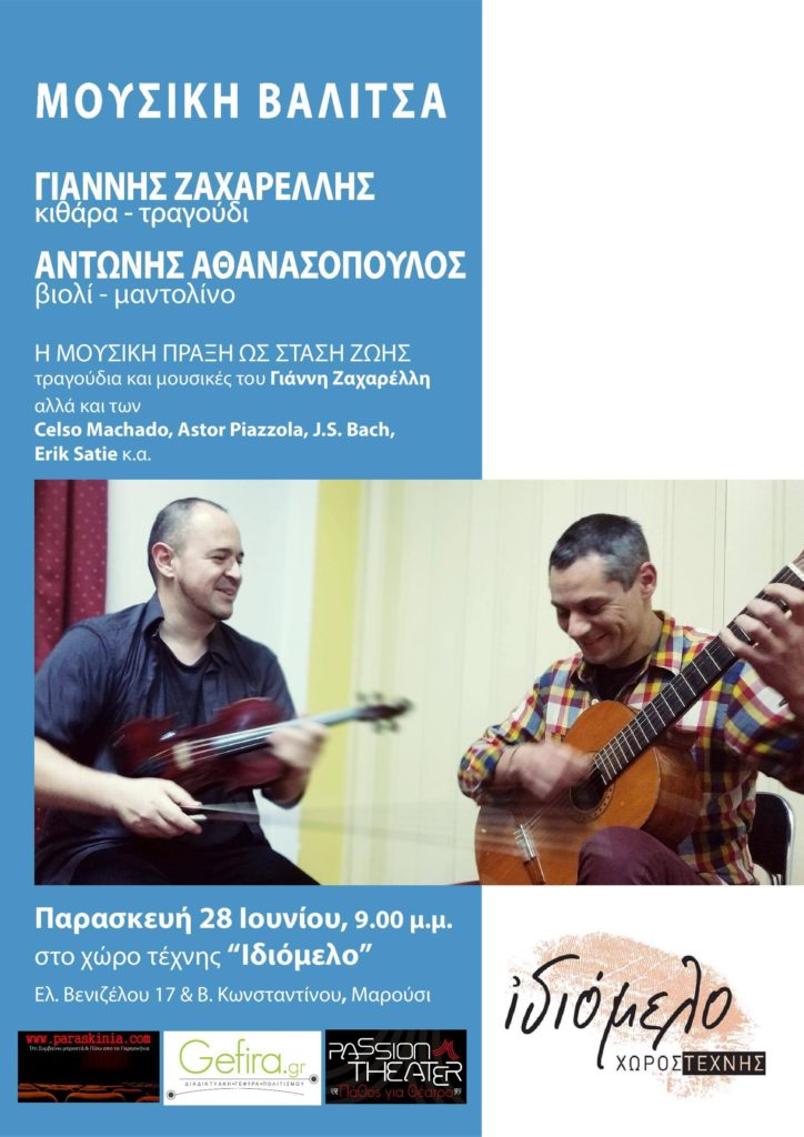 Δυο φίλοι μουσικοί, ταξιδεύουν με γεμάτες βαλίτσες στον μαγικό κόσμο της μουσικής, με ένα εκ πρώτης όψεως ετερόκλητο πρόγραμμα.