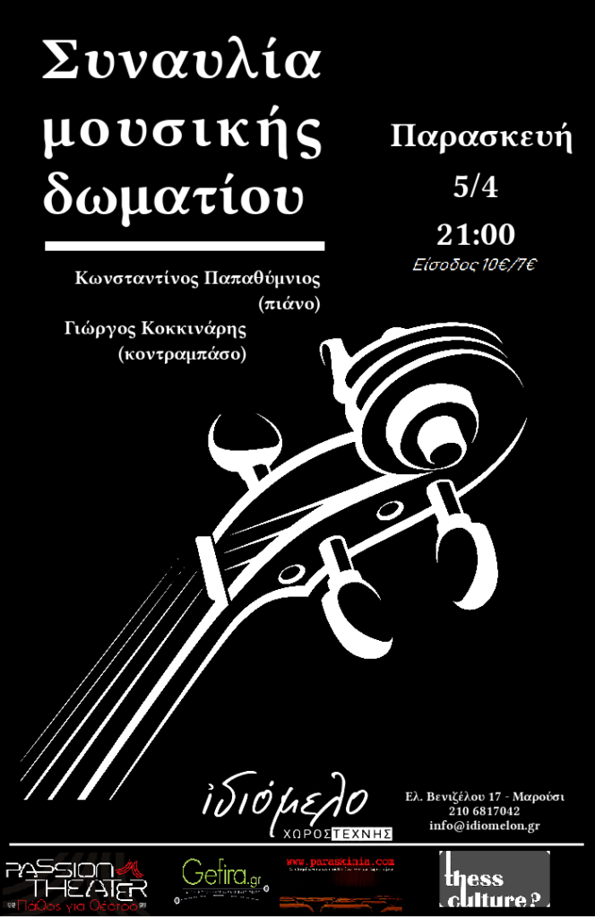 Ο κοντραμπασίστας Γιώργος Κοκκινάρης και ο πιανίστας Κωνσταντίνος Παπαθύμνιος έρχονται στο Ιδιόμελο, με την ιδανική του ακουστική, σε μια αξιοσημείωτη μουσική συνάντηση κοντραμπάσου και πιάνου.