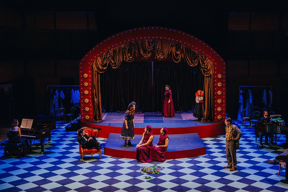 Τα σκηνικά και κοστούμια της Λουκίας Χουλιάρα, με αλλεπάλληλες αναφορές από τους πίνακες του Τουλούζ-Λωτρέκ, τα βαριετέ των ταινιών του Φελλίνι και τα σκοτεινά καμπαρέ του Μπομπ Φόσσι, είναι ένας ισότιμος αφηγητής της ιστορίας.