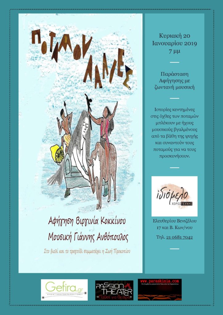Τα ποτάμια κυλάνε και πίσω δεν γυρνάνε. Άλλοτε φουσκώνουν, παρασέρνουν, άλλοτε κυλούν αργά και σε καλούν. Όπως και να χει, αν σταθείς δίπλα τους κι ακούσεις το τραγούδι τους, θα μάθεις για κεινο το νιούτσικο μικρό που εχάθη στα νερά τους, για να βρεθεί σαν πρίγκιπας να ψάχνει τρία κiτρα. Θα μάθεις πως η κουβέντα ενός μωρού έφερε πίσω στη ζωή έναν κυνηγό και για τον Άνεμο ψηλά που αγάπησε μια κόρη.