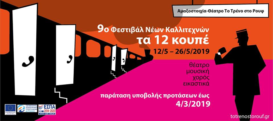 Το Φεστιβάλ Νέων Καλλιτεχνών «τα 12 Κουπέ», ο καθιερωμένος πλέον θεσμός που εμπνεύστηκε και καθιέρωσε η Τατιάνα Λύγαρη, επιστρέφει για 9η χρονιά στην Αμαξοστοιχία – Θέατρο το Τρένο στο Ρουφ από την Κυριακή 12 Μαΐου έως και την Κυριακή 26 Μαΐου 2019.