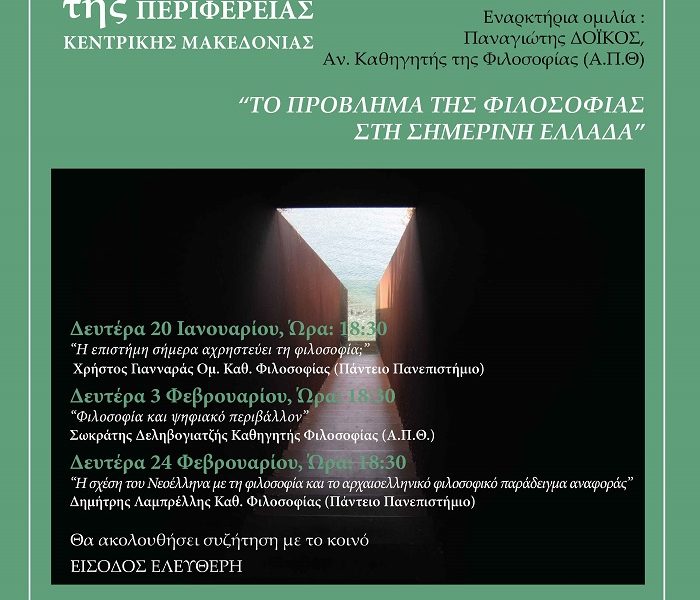 Ομιλητής : Παναγιώτης Δόικος Αν. Καθ. Φιλοσοφίας (Α.Π.Θ )