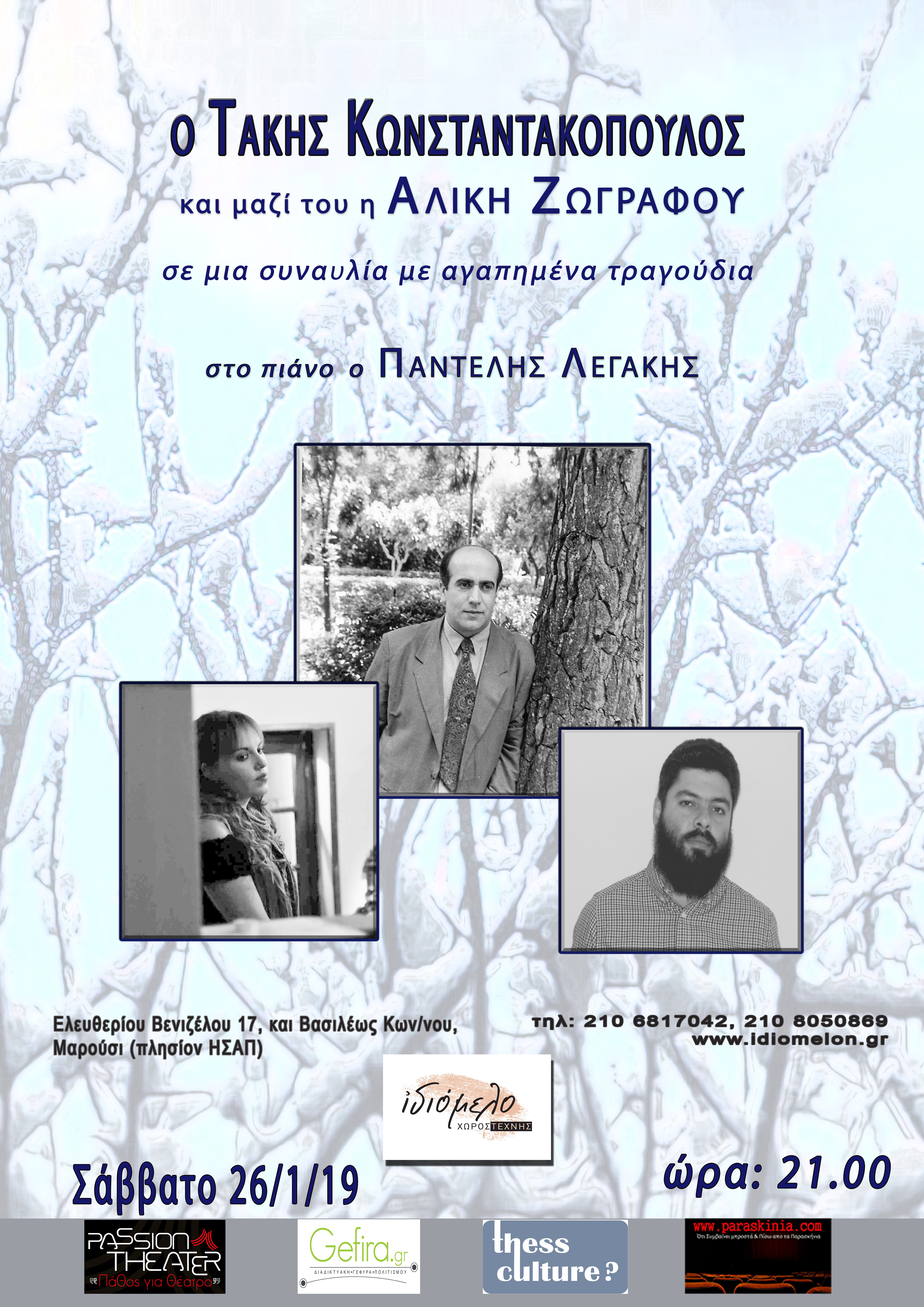 Ο Τάκης Κωνσταντακόπουλος έρχεται στο Ιδιόμελο, με τραγούδια αγαπημένα, παλιά και νέα, της προσωπικής του δισκογραφίας. Μαζί του στο τραγούδι η υπέροχη Αλίκη Ζωγράφου και στο πιάνο ο Παντελής Λεγάκης.