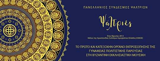 Η Γυναικεία Βυζαντινή Χορωδία του Πανελληνίου Συνδέσμου Ψαλτριών πραγματοποιεί τις πρόβες της στο πολιτιστικό κέντρου του Ιερού Ναού Αγίου Αθανασίου Πολυδρόσου και δέχεται αιτήσεις για νέα μέλη στο e-mail του Συνδέσμου [email protected]