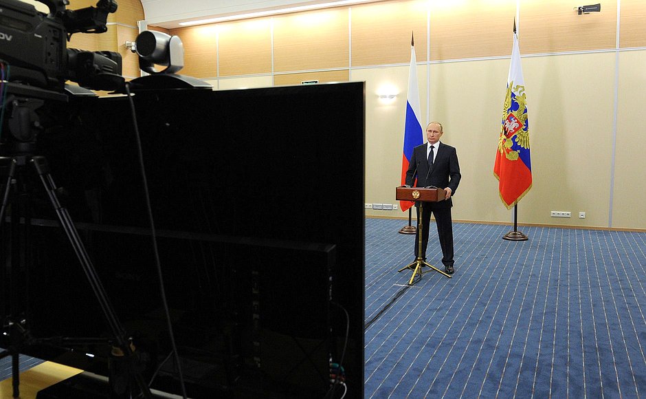 «Ένα κονσέρτο συμφωνικής ορχήστρας στο αμφιθέατρο της Παλμύρας. Λίγο καιρό πριν κάτι τέτοιο ήταν αδύνατο. Η αρχαία πόλη βρέθηκε υπό τον έλεγχο του Ισλαμικού Κράτου και τα μνημεία της υπέστησαν σοβαρές ζημιές. Τώρα η μουσική της ορχήστρας που διευθύνει ο Βαλέρι Γκέργκιεφ στέλνει μήνυμα αλληλεγγύης σε όλα κράτη για την αποκατάσταση της Παλμύρας».