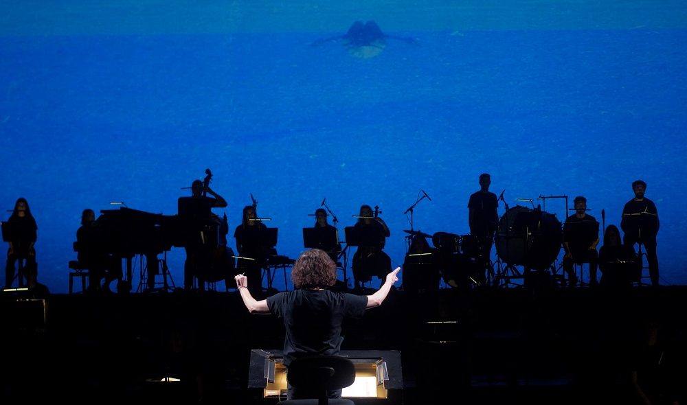 Πάνω από 130 μικροί και μεγάλοι περφόρμερ συμμετέχουν στη μουσική παράσταση Πώς βρέθηκε ένα κοράκι στην κοιλιά της φάλαινας;, η οποία βασίζεταισε έναν παραδοσιακό μύθο της φυλής των Ινουίτ (Εσκιμώοι της Αλάσκας, της Γροιλανδίας και του Καναδά). Πολυφωνικά παραδοσιακά τραγούδια, ηχοτοπία της φύσης και σύγχρονα μουσικά ιδιώματα συνθέτουν ένα συναρπαστικό μουσικό παραμύθι που συνομιλεί με την τέχνη του animation, προσφέροντας μια σπάνια εμπειρία θέασης και ακρόασης. Η μουσική διεύθυνση και η καλλιτεχνική επιμέλεια της παράστασης είναι της Δήμητρας Τρυπάνη, ενώ η σύνθεση του μουσικού παραμυθιού ανήκει στην Ισμήνη Γυφτάκη-Μπεκ.