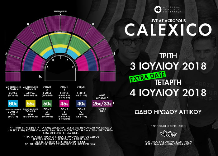 Οι Calexico θα εμφανιστούν στο Ωδείο Ηρώδου Αττικού στο πλαίσιο του Φεστιβάλ Αθηνών και Επιδαύρου.
