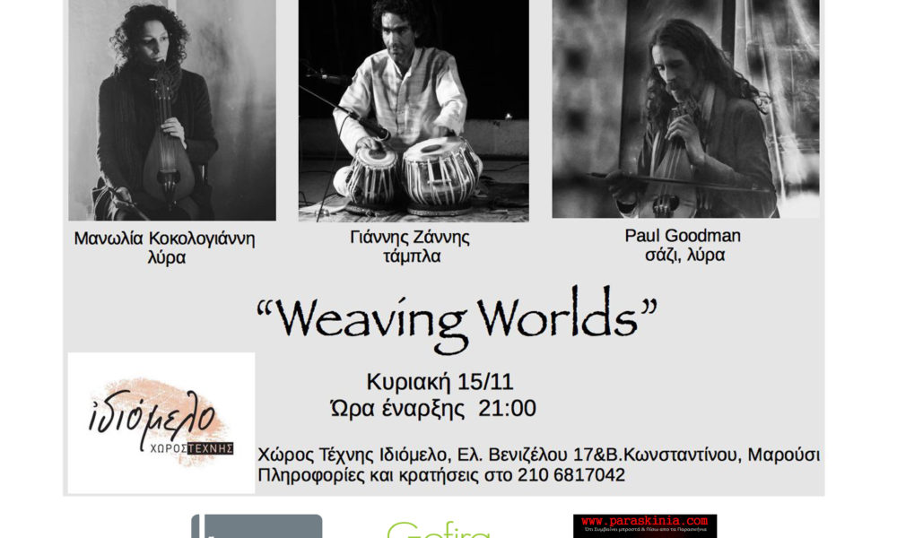 Οι τρεις μουσικοί παρουσιάζουν τους διαλόγους τους στον Χώρο Τέχνης Ιδιόμελο την Κυριακή 15/12 στις 21:00 και προσκαλούν τον κάθε ένα από εμάς να εμπλουτίσει με την παρουσία του αυτή την μοναδική ύφανση.