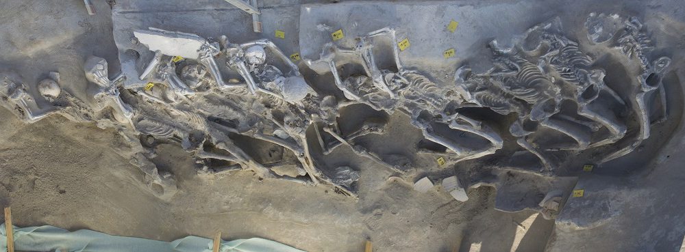 Το εύρημα των Δεσμωτών του Φαλήρου αφορά σε ομαδική ταφή 78 ανθρώπινων σκελετών που εντοπίστηκε τον Μάρτιο του 2016 στο πλαίσιο σωστικής ανασκαφής. Η εκτέλεση των Δεσμωτών, σύμφωνα με τα έως τώρα δεδομένα, έγινε επί τόπου και τα άτομα ετάφησαν αλυσοδεμένα μεταξύ τους σε τρεις συστάδες. Η πρώτη σειρά αποτελείται από δύο ομάδες δεσμωτών, η μία στη συνέχεια της άλλης. Στην πρώτη ομάδα, η στάση του σώματος διαφέρει και οι σκελετοί φέρουν ακόμα τα μεταλλικά δεσμά τους, ενώ τα άτομα της δεύτερης ομάδας εναποτέθησαν στο σημείο δεμένα πισθάγκωνα χωρίς ωστόσο να φέρουν μεταλλικά δεσμά. Χωρίς μεταλλικά δεσμά σώζονται και οι δεσμώτες της δεύτερης συστάδας, ενώ στην τρίτη συστάδα οι σκελετοί φέρουν σιδηρά δεσμά στους καρπούς των χεριών τους. Το εύρημα χρονολογείται στην ταραχώδη περίοδο του β μισού του 7ου αι. π.Χ.