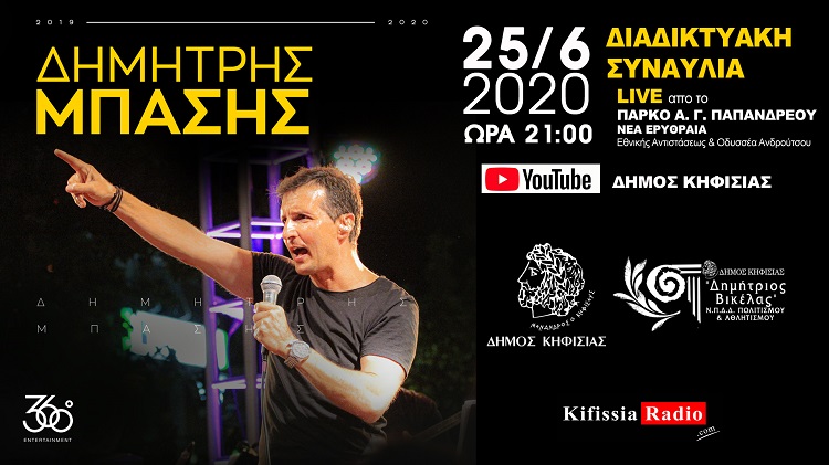 Ο Δημήτρης Μπάσης, ένας ταλαντούχος, γνήσιος λαϊκός ερμηνευτής, θα σφραγίσει με την ερμηνεία του τραγούδια από την προσωπική του δισκογραφία αλλά και τραγούδια μεγάλων δημιουργών, σε ένα μοναδικό διαδικτυακό live την Πέμπτη 25 Ιουνίου 2020 στις 21:00.