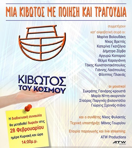 μαζί με εκλεκτούς συμμετέχοντες καλλιτέχνες, τραγουδούν και απαγγέλουν για την ΚΙΒΩΤΟ ΤΟΥ ΚΟΣΜΟΥ.