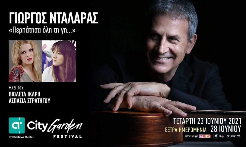 | «Ο γύρος του κόσμου με ελληνικά τραγούδια»«Περπάτησα όλη τη γη..»ΓΙΩΡΓΟΣ ΝΤΑΛΑΡΑΣ Μαζί του η Βιολέτα Ίκαρη και η Ασπασία ΣτρατηγούΤΕΤΑΡΤΗ 23 ΙΟΥΝΙΟΥ 2021 ΔΕΥΤΕΡΑ 28 ΙΟΥΝΙΟΥ 2021CT GARDEN FESTIVAL ![]() ‘‘Σαν σύννεφο απ’ τον καιρό μονάχο μες στον ουρανό πήρα παιδί τους δρόμους Περπάτησα όλη τη γη μ’ ένα τραγούδι στην καρδιά και τη βροχή στους ώμους…’’( Απόσπασμα από τον “Μέτοικο” των Ζωρζ Μουστακί – Δημήτρη Χριστοδούλου) ![]() Ο Γιώργος Νταλάρας από το 1981 ταξιδεύει σ’ όλον τον κόσμο το ελληνικό τραγούδι. Έχει δώσει, πάνω από χίλιες συναυλίες στους σπουδαιότερους συναυλιακούς χώρους του πλανήτη και όπως τον χαρακτηρίζει ο διεθνής Τύπος είναι ο “Έλληνας τραγουδιστής των πέντε ηπείρων”. Το εντυπωσιακά ευρύ ρεπερτόριο του, εκτείνεται σε όλες τις εκφάνσεις του ελληνικού τραγουδιού και όχι μόνο. Ο Γιώργος Νταλάρας τιμά το θεματικό μας φεστιβάλ, σηκώνοντας την αυλαία του. Μας καλεί να ‘‘περπατήσουμε’’ μαζί του σ’ όλη τη γη, με πολύχρωμα, ταξιδιάρικα τραγούδια. Θα ’ναι ένας δρόμος συναρπαστικός… Με τη μαγευτική δύναμη ενός ζωντανού θρύλου. ![]() ![]() ΓΙΩΡΓΟΣ ΝΤΑΛΑΡΑΣ ΤΕΤΑΡΤΗ 23 ΙΟΥΝΙΟΥ 2021 στις 21.00 ΔΕΥΤΕΡΑ 28 ΙΟΥΝΙΟΥ 2021 στις 21.00 CT GARDEN FESTIVAL by Christmas Theater |