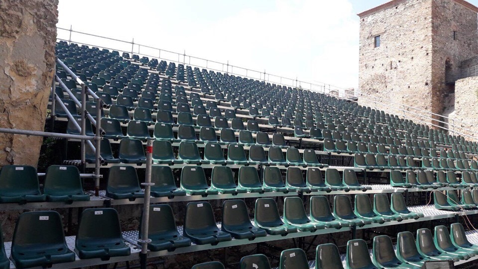 Έχουν τοποθετηθεί ήδη οι κερκίδες με 750 αριθμημένες θέσεις ώστε οι θεατές να μην ταλαιπωρούνται. Τα καθίσματα είναι αμφιθεατρικά τοποθετημένα προκειμένου η θέαση στην σκηνή να είναι απόλυτα ικανοποιητική από κάθε σημείο.