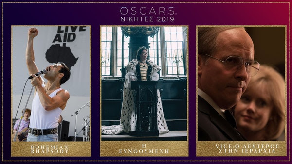 Ολοκληρώθηκε χθες, Κυριακή 24 Φεβρουαρίου, η 91η απονομή των βραβείων Όσκαρ® σε όλες εκείνες τις ταινίες που ξεχώρισαν για την καλλιτεχνική και τεχνική τους αρτιότητα κατά τη διάρκεια της περασμένης χρονιάς. Στη λαμπερή βραδιά που έλαβε χώρα στο Kodak Theatre στο Λος Άντζελες, τρεις ταινίες τηςOdeon πρωταγωνίστησαν και, συγκεκριμένα, το «Bohemian Rhapsody» που απέσπασε και τα περισσότερα βραβεία της βραδιάς, «Η Ευνοούμενη» του Γιώργου Λάνθιμου και το «Vice: Ο Δεύτερος στην Ιεραρχία».
