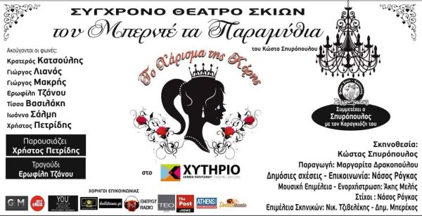 Η παράδοση συναντά την εποχή μας, μέσα από τα Παραμύθια του Μπερντέ… σε ένα μεγάλο Grand Finale με τον Θρύλο του θεάτρου Σκιών Θανάση Σπυρόπουλο να είναι παρών «Το χάρισμα της κόρης», ένα παραμύθι για όλη την οικογένεια. Φιγούρες που περπατάνε, μιλάνε και έχουν κίνηση επάνω στο Θεατρικό πανί. Ο Θανάσης Σπυρόπουλος στα 87 του χρόνια θα κόψει την πρωτοχρονιάτικη πίτα στο θέατρο Χυτήριο.