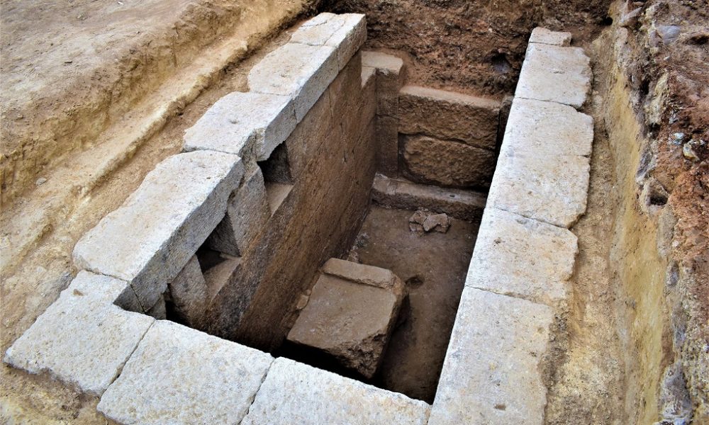 Η ανασκαφική έρευνα έφερε στο φως συλημένο ταφικό μνημείο ενδιαφέρουσας αρχιτεκτονικής μορφής του τύπου του κιβωτιόσχημου τάφου με θύρωμα και θήκες. Ο τάφος αυτός δομήθηκε αριστοτεχνικά εντός ορύγματος, που είχε διανοιχθεί σε ιζήματα αμμώδους και αργιλομαργαϊκής σύστασης και προστατεύθηκε με περισσή γνώση από τις πλευρικές πιέσεις τους.